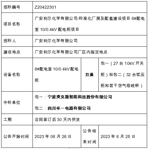 中標(biāo)結(jié)果公示