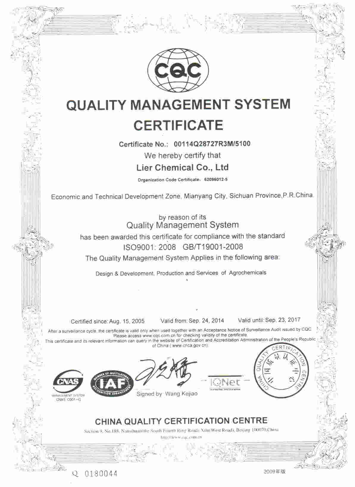 江蘇快達(dá)農(nóng)化股份有限公司系原國有如東農(nóng)藥廠整體改制而成,是綜合性大型農(nóng)藥化工企業(yè),國內(nèi)農(nóng)藥生產(chǎn)骨干企業(yè)、光氣定點(diǎn)生產(chǎn)企業(yè)、江蘇省高新技術(shù)企業(yè)。現(xiàn)為利爾化學(xué)股份有限公司(股票代碼002258)控股51%的股份制公司。企業(yè)占地面積75萬平方米,其中,洋口化工園區(qū)新區(qū)55萬平...