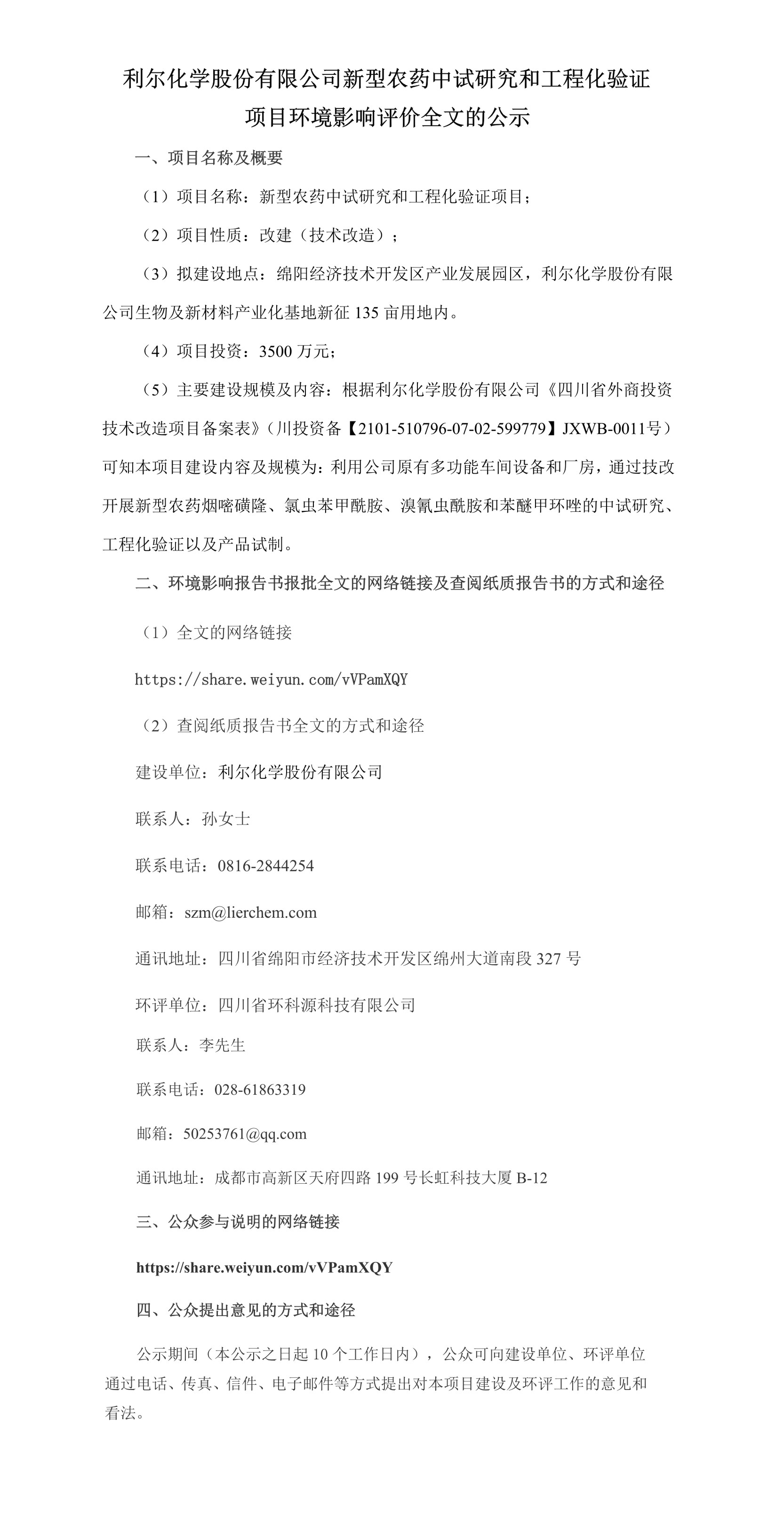 廣安利爾化學有限公司電纜公招采購中標公示 項目名稱廣安利爾化學有限公司技改擴能及配套設施建設用電纜采購項目業(yè)主廣安利爾化學有限公司...