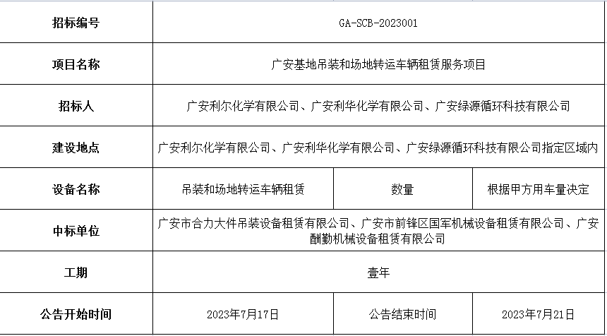 中標結(jié)果公示